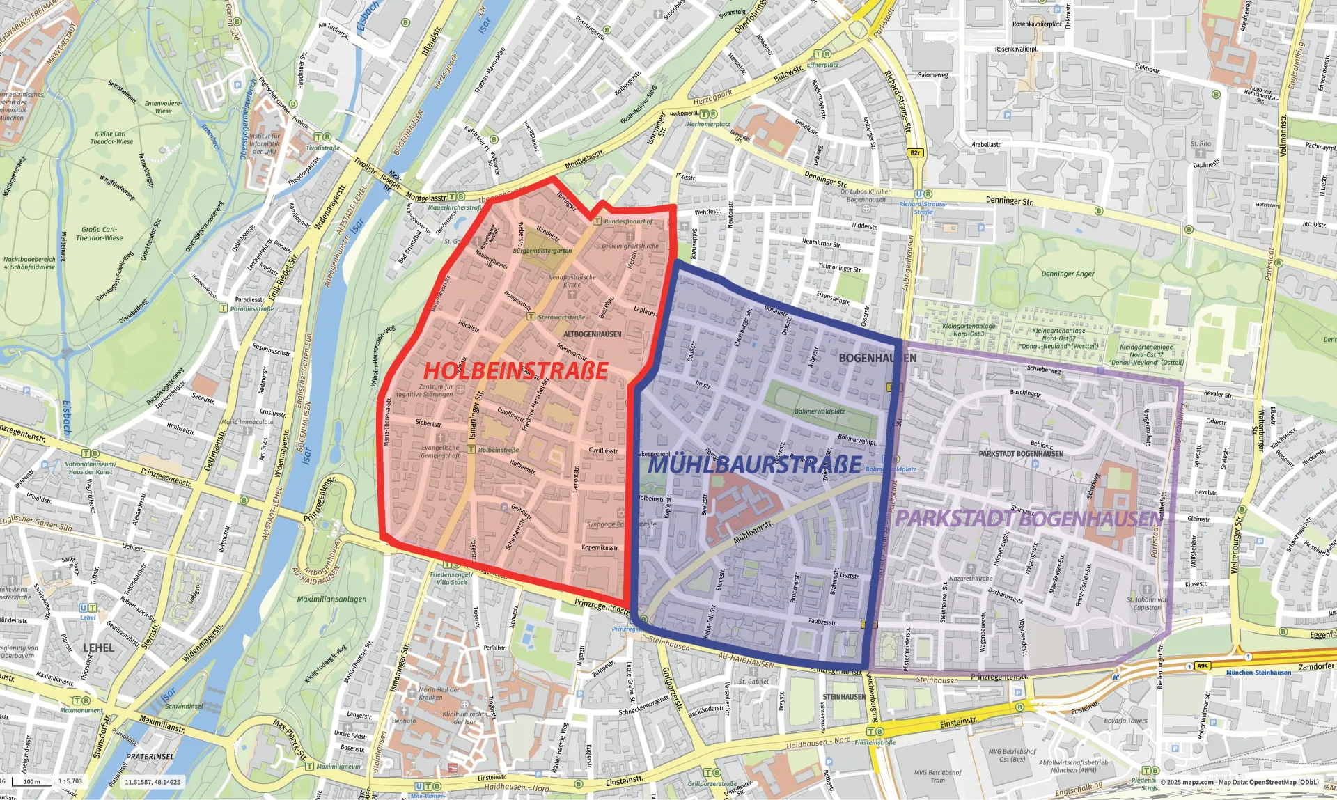 Die geplanten Bereiche: Holbeinstraße und Mühlbaurstraße